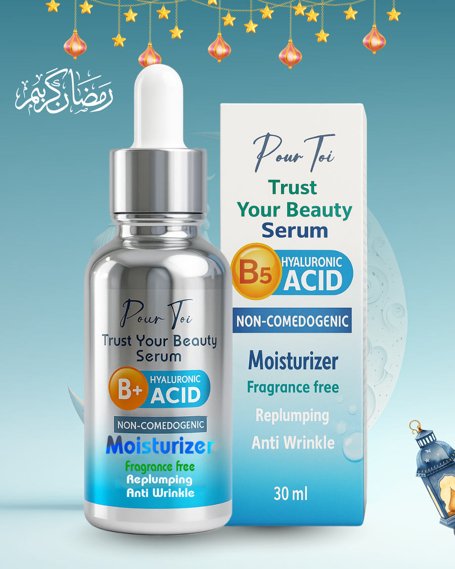 - حمض الهيالورونيك: يحتفظ بكمية مياه تعادل 1000 مرة وزنه لترطيب مكثّف.