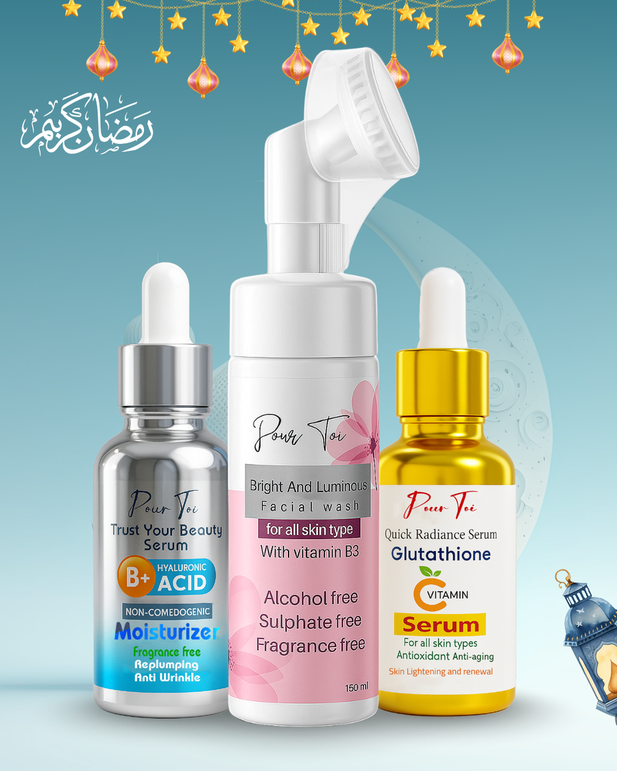 تقدم Pourtoi مجموعة عناية متكاملة صُممت بعناية لتلبية احتياجات البشرة اليومية، بدءًا من التنظيف اللطيف ووصولًا إلى الترطيب العميق والتفتيح المتوازن.