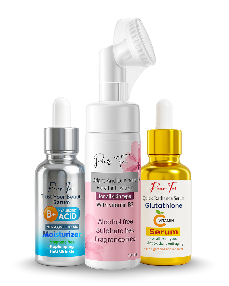تقدم Pourtoi مجموعة عناية متكاملة صُممت بعناية لتلبية احتياجات البشرة اليومية، بدءًا من التنظيف اللطيف وتنقية البشرة، وصولًا إلى الترطيب العميق والتفتيح المتوازن.