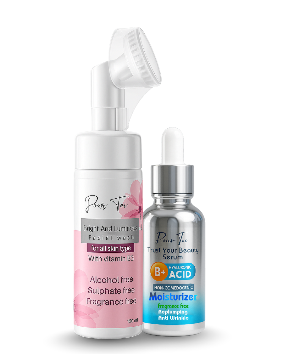 تقدم Pourtoi مجموعة عناية أساسية صُممت لتلبية احتياجات البشرة اليومية، من التنظيف الفعّال إلى الترطيب المكثف، للحفاظ على توازن البشرة وراحتها طوال اليوم.